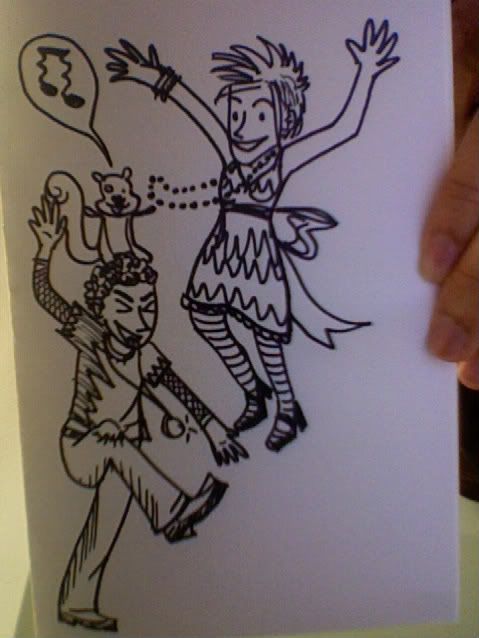Here's the brother/sister duo of Stephen and Sufie Helski. I may have been listening to Architecture in Helsinki when I first drew these two. Stephen plays banjo/drums and Suphie the guitar/piano/pan pipes. They both sing.I'm not sure if they'll pop up in anything, but I like them. Maybe they have a place in Kim n' Ken's story.