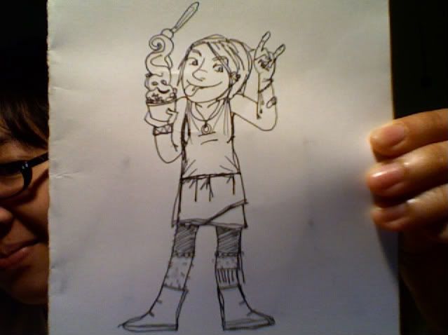 My drawings today were fairly non-noteworthy, with the exception of a Firegrave pic drawn on a placemat in lip liner. The placemat was thrown away by a busser. I'll try and get up a nice final piece in the next few days.