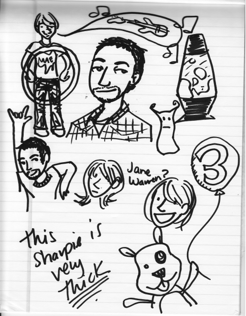 This is the first night where I just let my sharpie crap something out and I didn't bother to do ANYTHING with it. Pretty terrible. I'm capable of drawing more than shoulder-up-face-to-the-left pictures when I try. I think everyone should be allowed one "It's Okay to be Lazy" Freebie whenever they try to do something for a month and... well, I just used mine up.